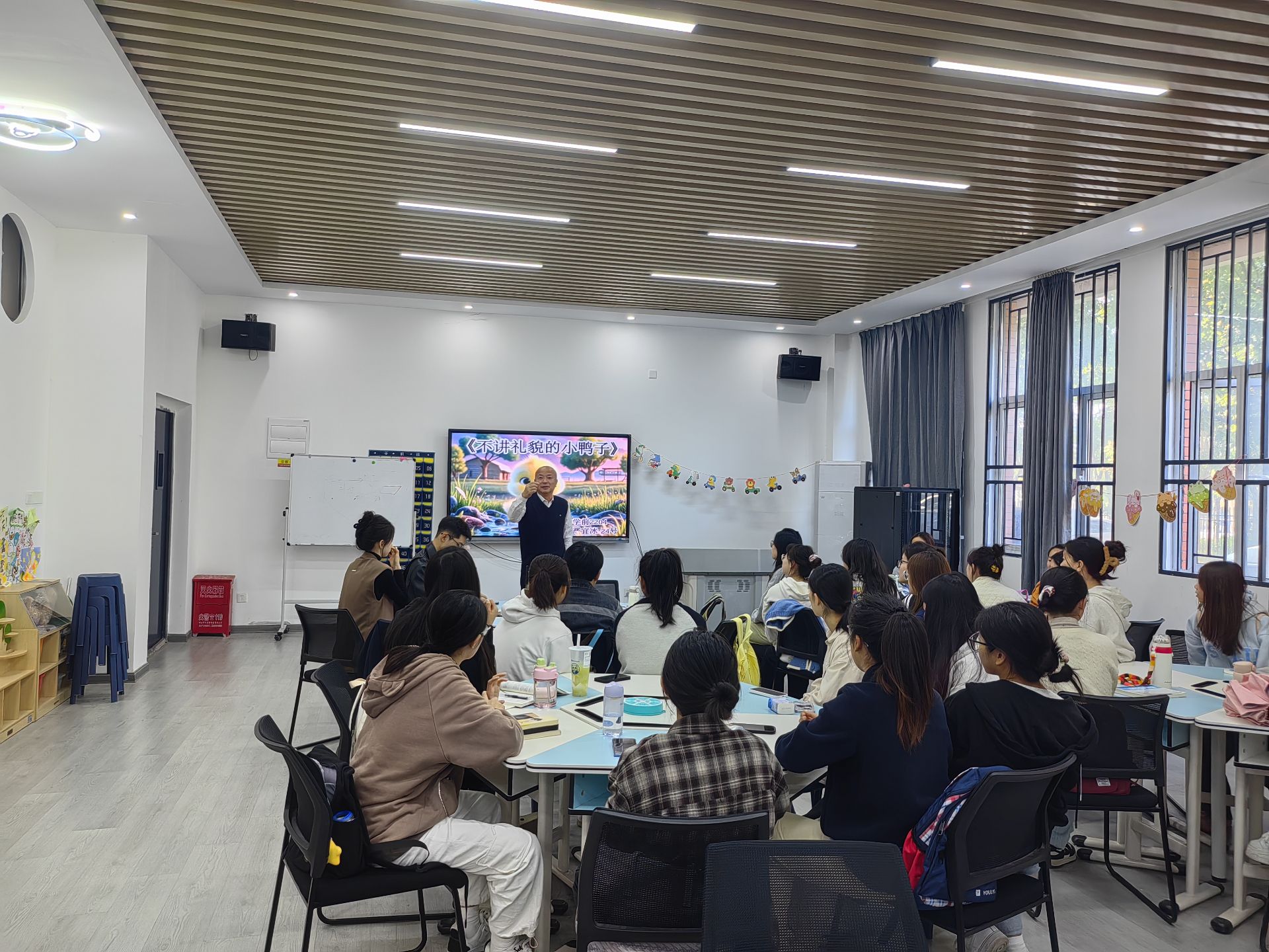 严宜冰同学带来了故事《不讲礼貌的小鸭子》,清晰流畅的语言表达,自然协调的肢体动作,声情并茂的精彩表演,让在场的师生情不自禁地沉浸在故事之中,回味无穷。