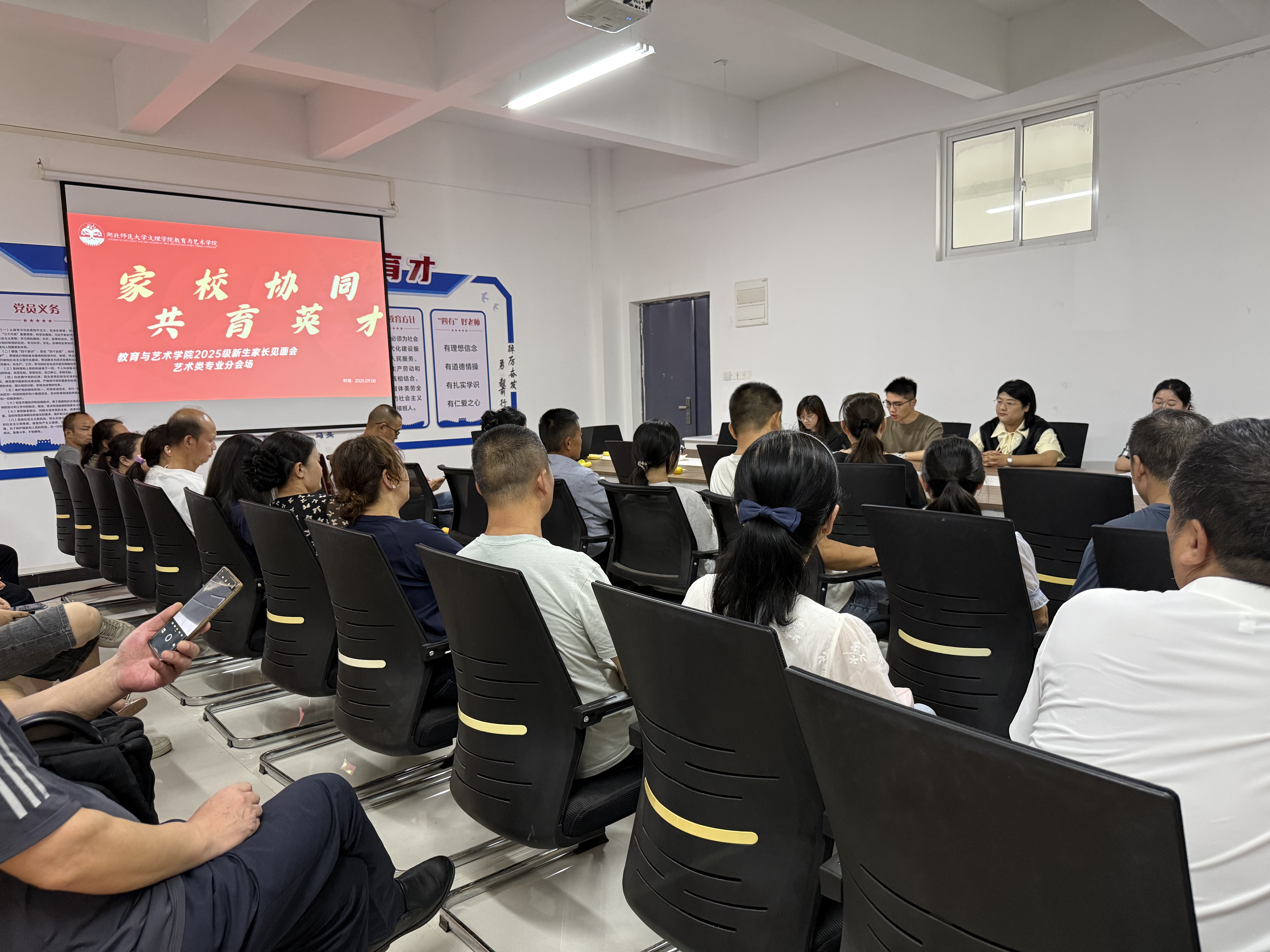 2025年9月8日中午12时,AK官网教育与艺术学院以“主会场+分会场”“线下+线上直播”模式,在图书馆报告厅举行2025级新生家长见面会,获家长热烈响应。教艺学院院长王文教授、副院长胡蕾、党总支副书记陈小龙、各专业负责人及资深教师,全体辅导员参加会议。
