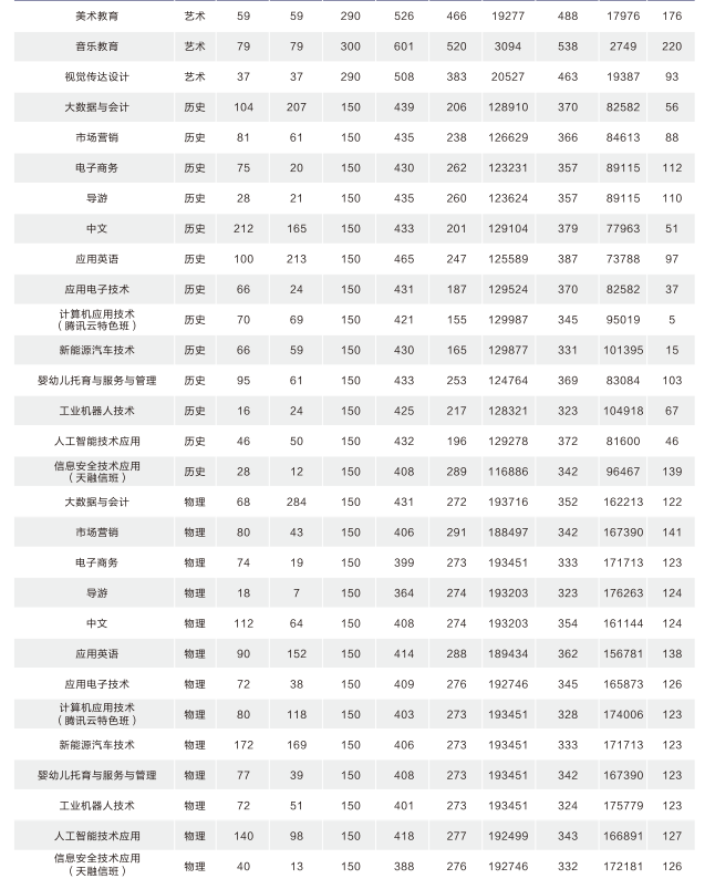 2022年湖北省专科各专业录取分数一览表